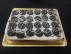Descripción del envase Bandeja de color oro de diametro (Medidas 38x31 cm.) y caja de cartón de color marrón con serigrafia en color amarillo y negro (Medidas 40x32x8 cm.)
