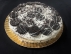 Descripción del envase Bandeja de color oro de diametro (Medidas 30 cm. diametro.) y caja de cartón de color marrón con serigrafia en color amarillo y negro (Medidas 33x33x7 cm.)